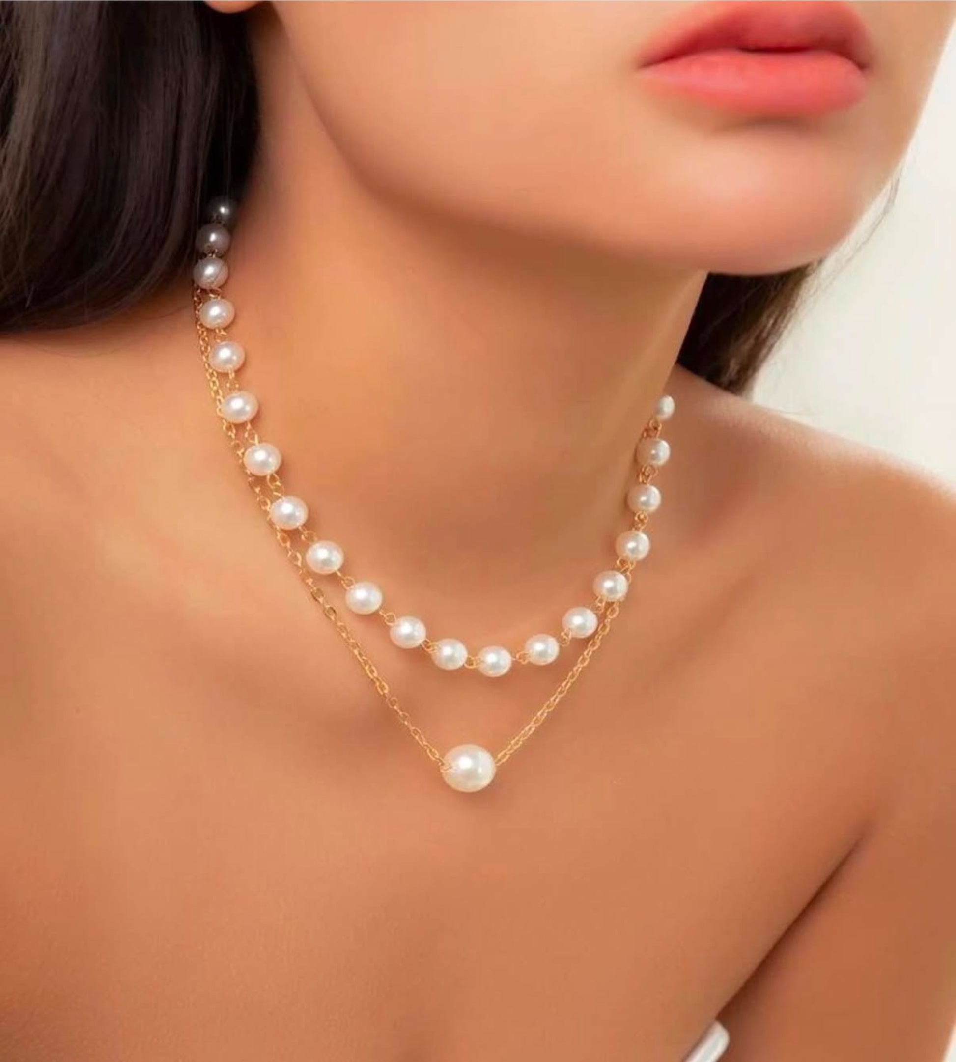 Make a statement with this sophisticated dual-layer necklace featuring a classic strand of luminous pearls paired with a minimalist gold chain and a standout central pearl pendant. Perfect for weddings, evening events, or elevating everyday looks, this piece blends timeless elegance with modern flair. Lightweight and adjustable for a comfortable, custom fit.
