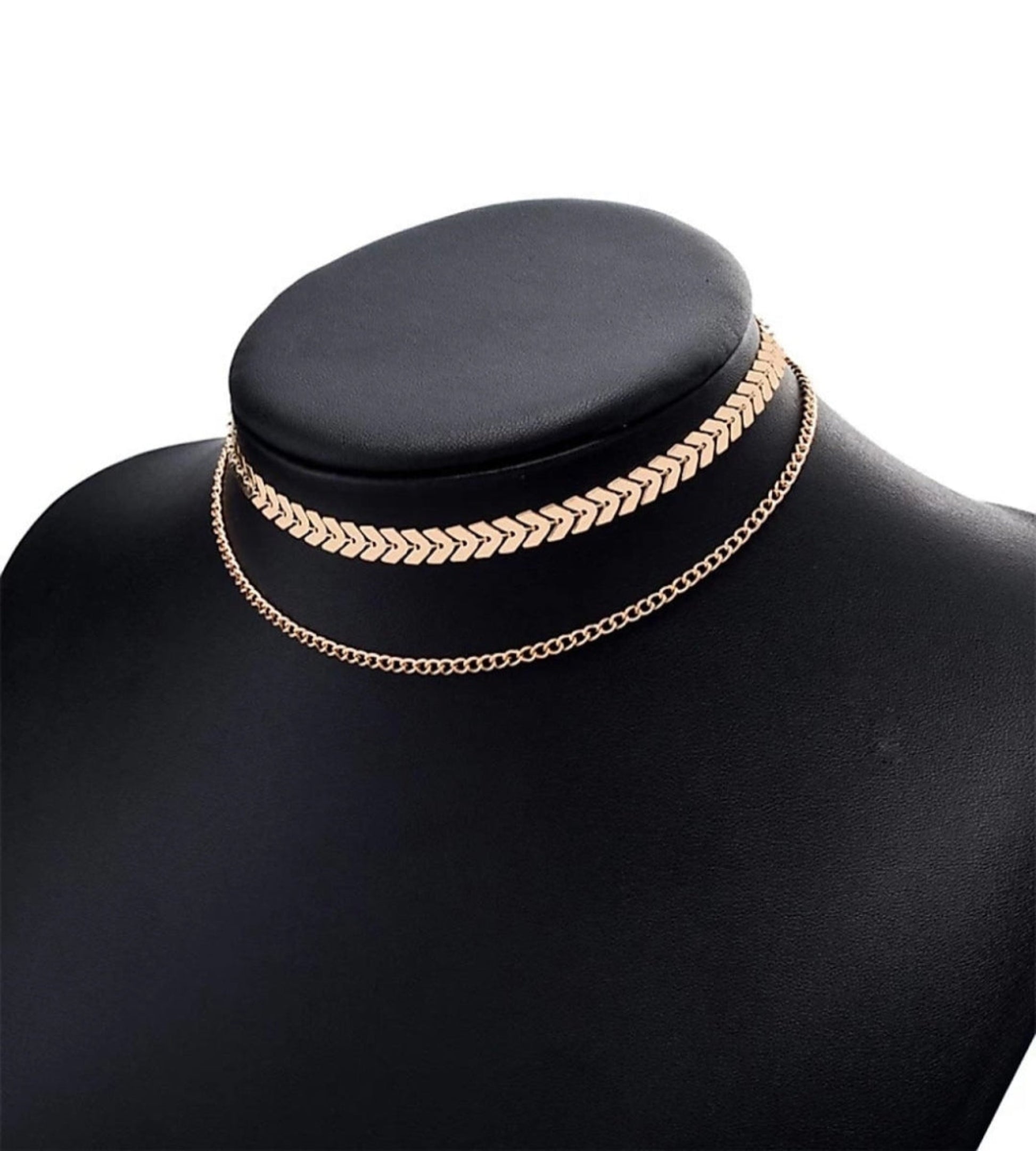 Striking yet sophisticated, this gold double-layer choker necklace features two finely crafted chains that gracefully accentuate the neckline. The warm glow of polished gold adds a touch of luxury, making it the perfect piece for layering or wearing solo for an effortlessly chic statement.
