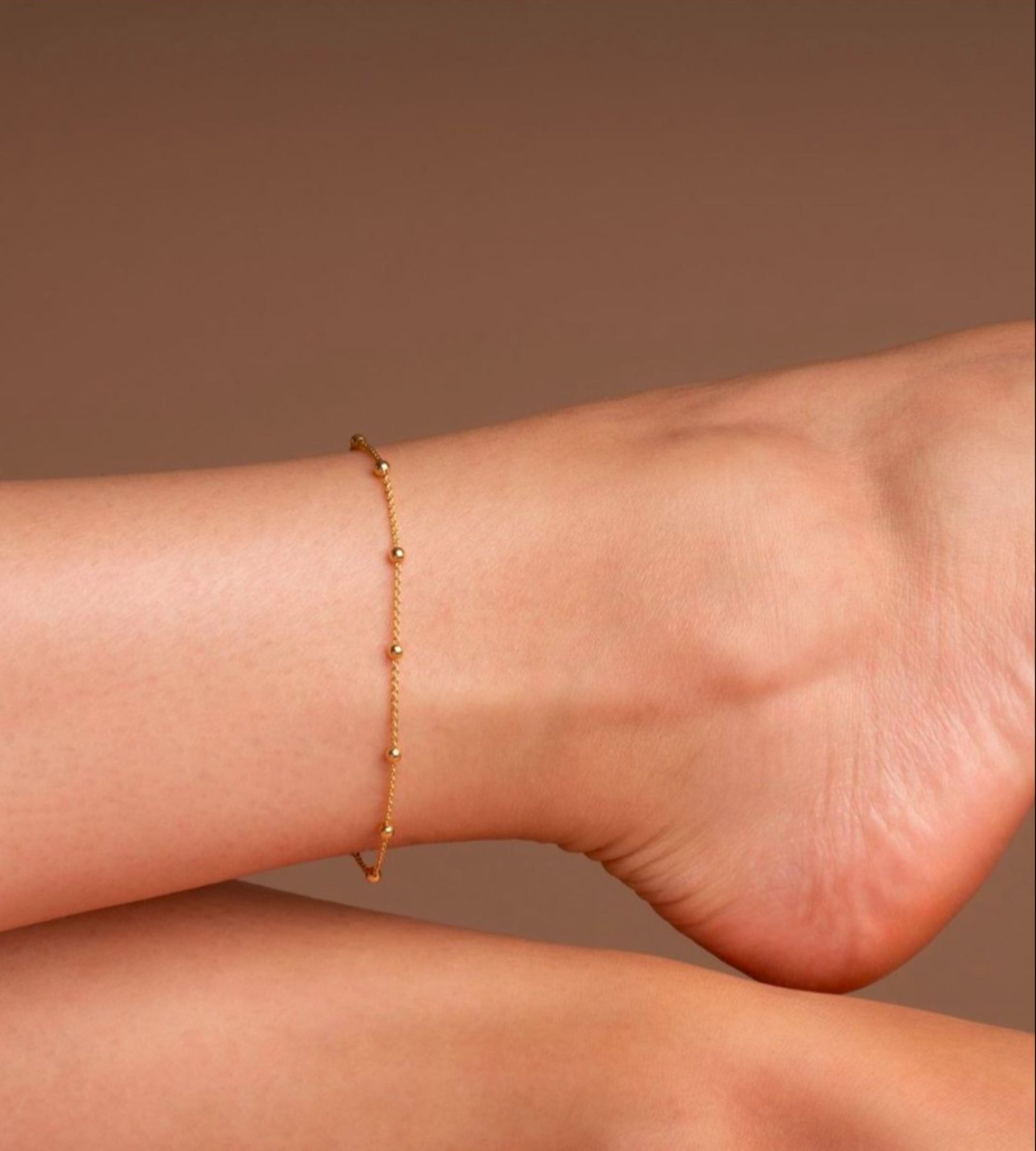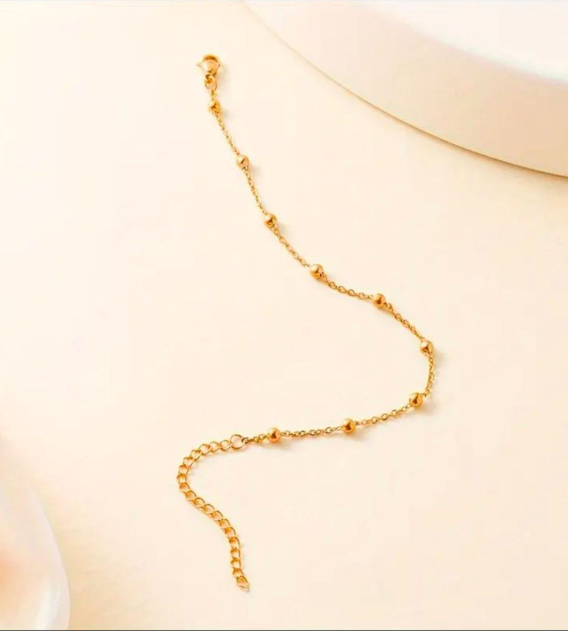 Step into elegance with this dainty gold-plated beaded anklet, designed to enhance your every step with a touch of understated luxury. Crafted with a fine chain and spaced mini gold beads, this minimalist anklet brings grace and simplicity to your feet - perfect for daily wear or subtle festive styling.